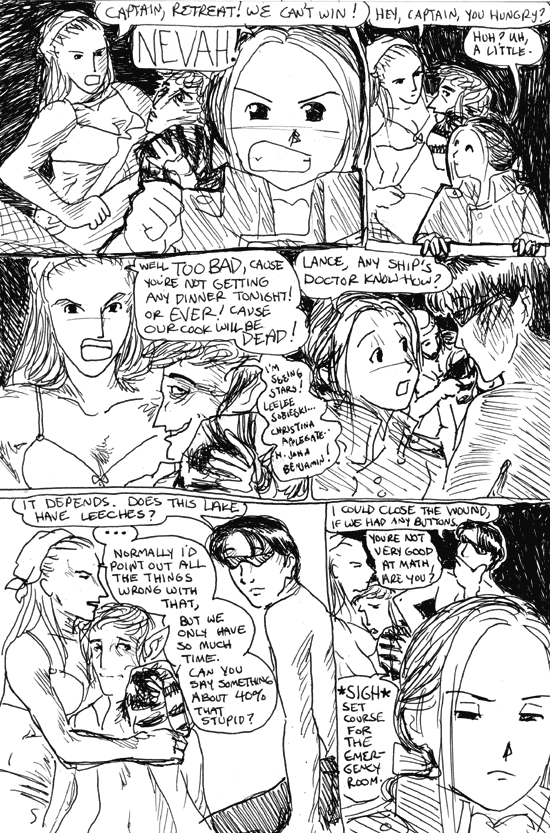 LANCE: I could close the wound, if we had any buttons.